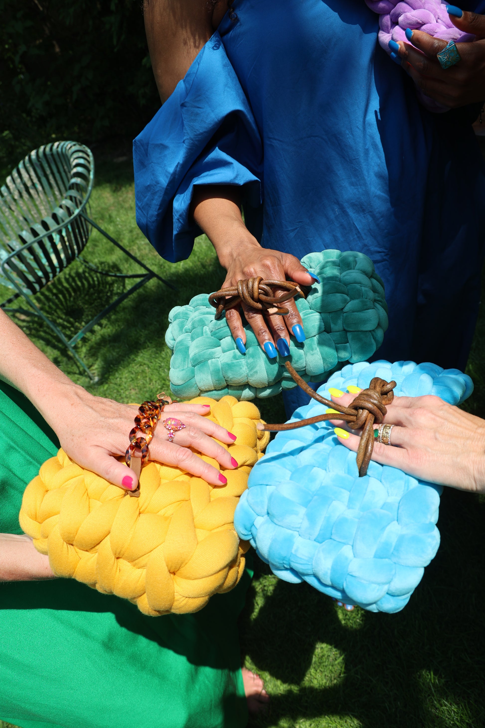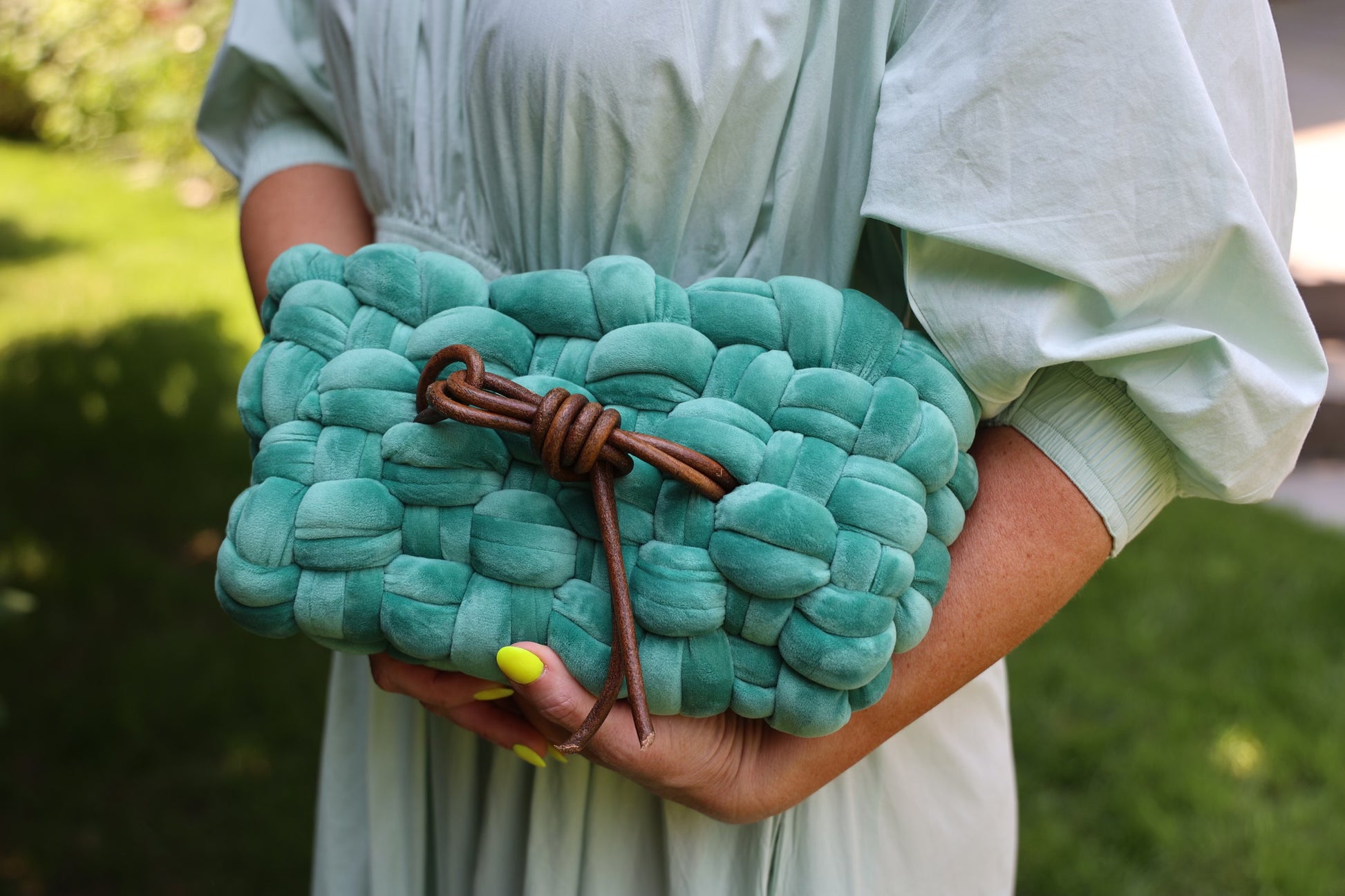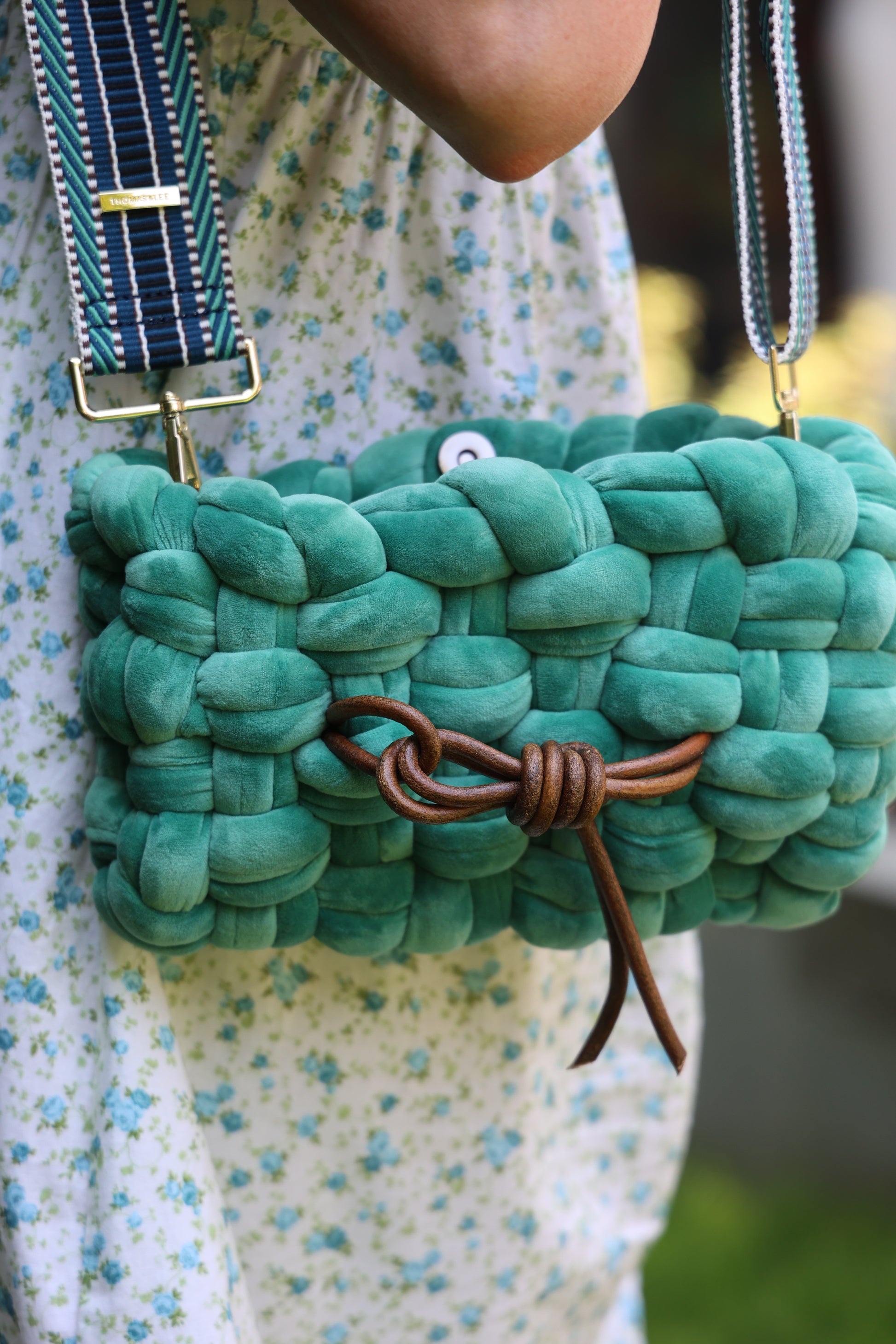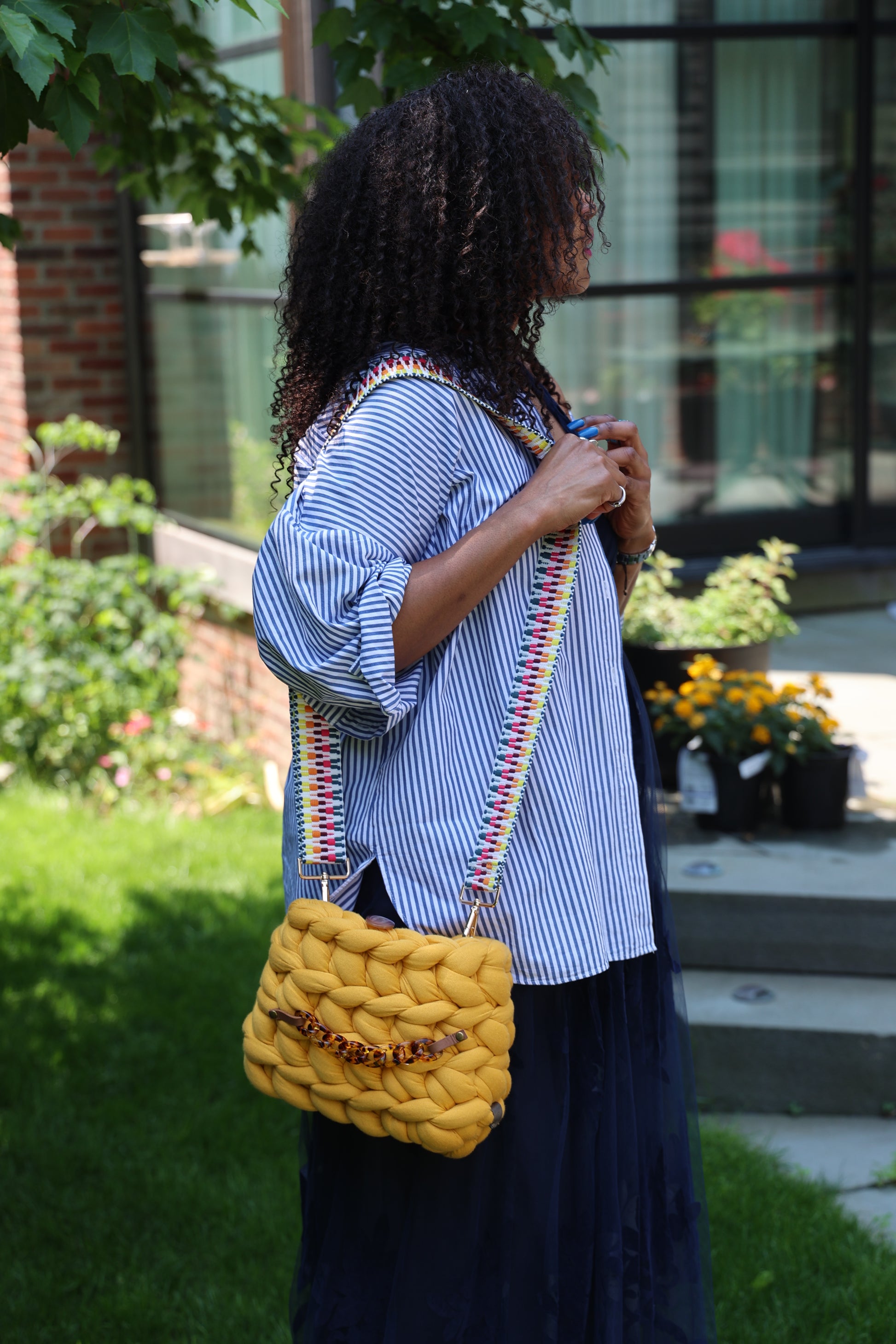 Meet the latest convertible clutch in a weave stitch with leather knotting as a hand strap. Another on-the-go purse, (because we are always on-the-go), that can elevate your outfit and add that extra punch of fun color. Add removable straps (sold separately from Hamilton Grace Designs www.hamiltongrace.com +$48) and change the look completely. Convert from cross body to short strap to clutch in less than 10 seconds.