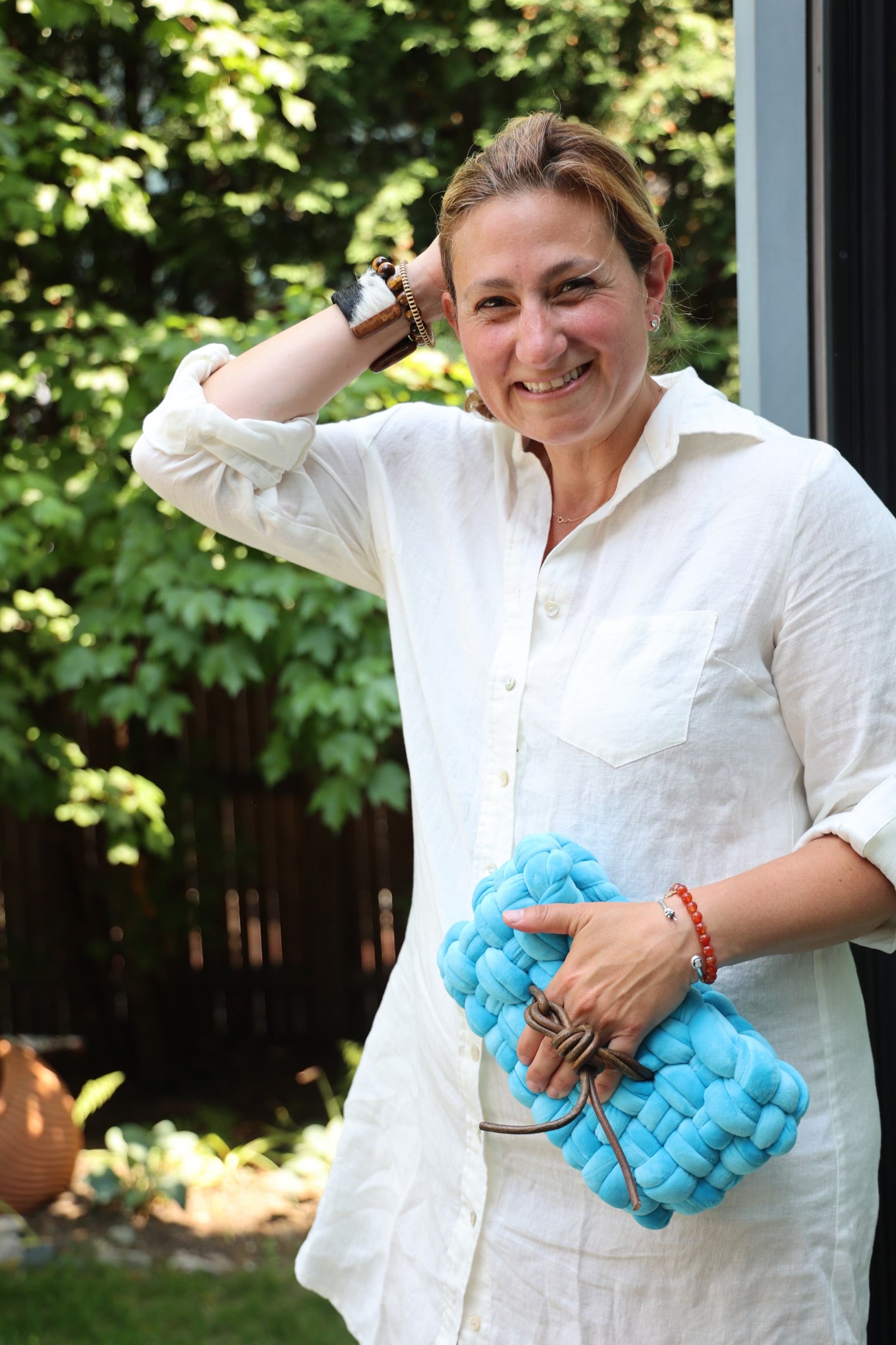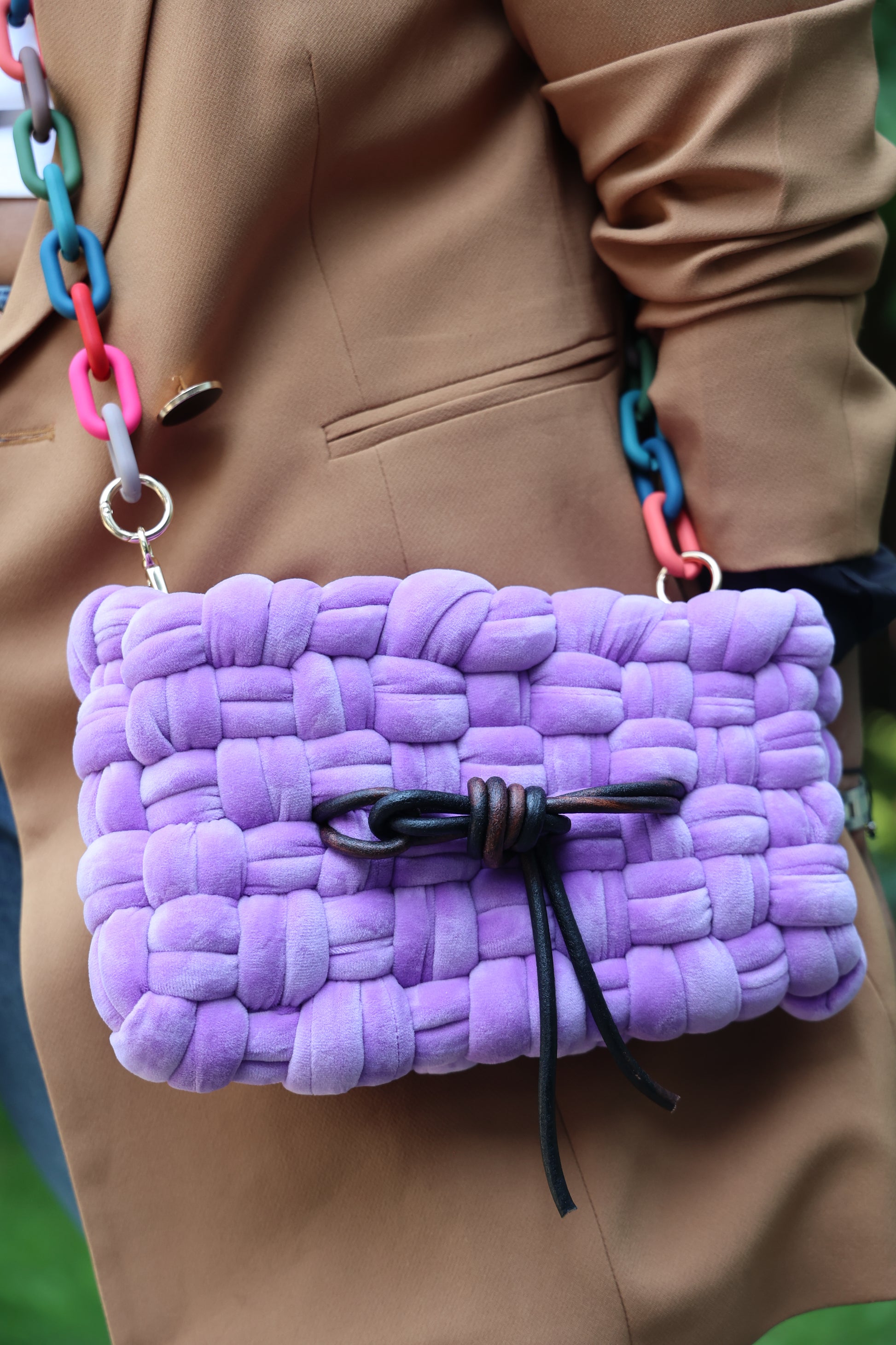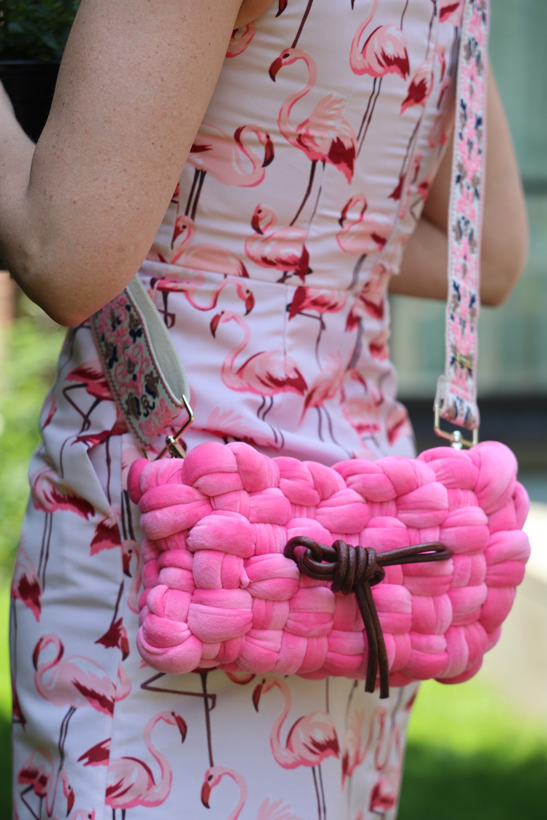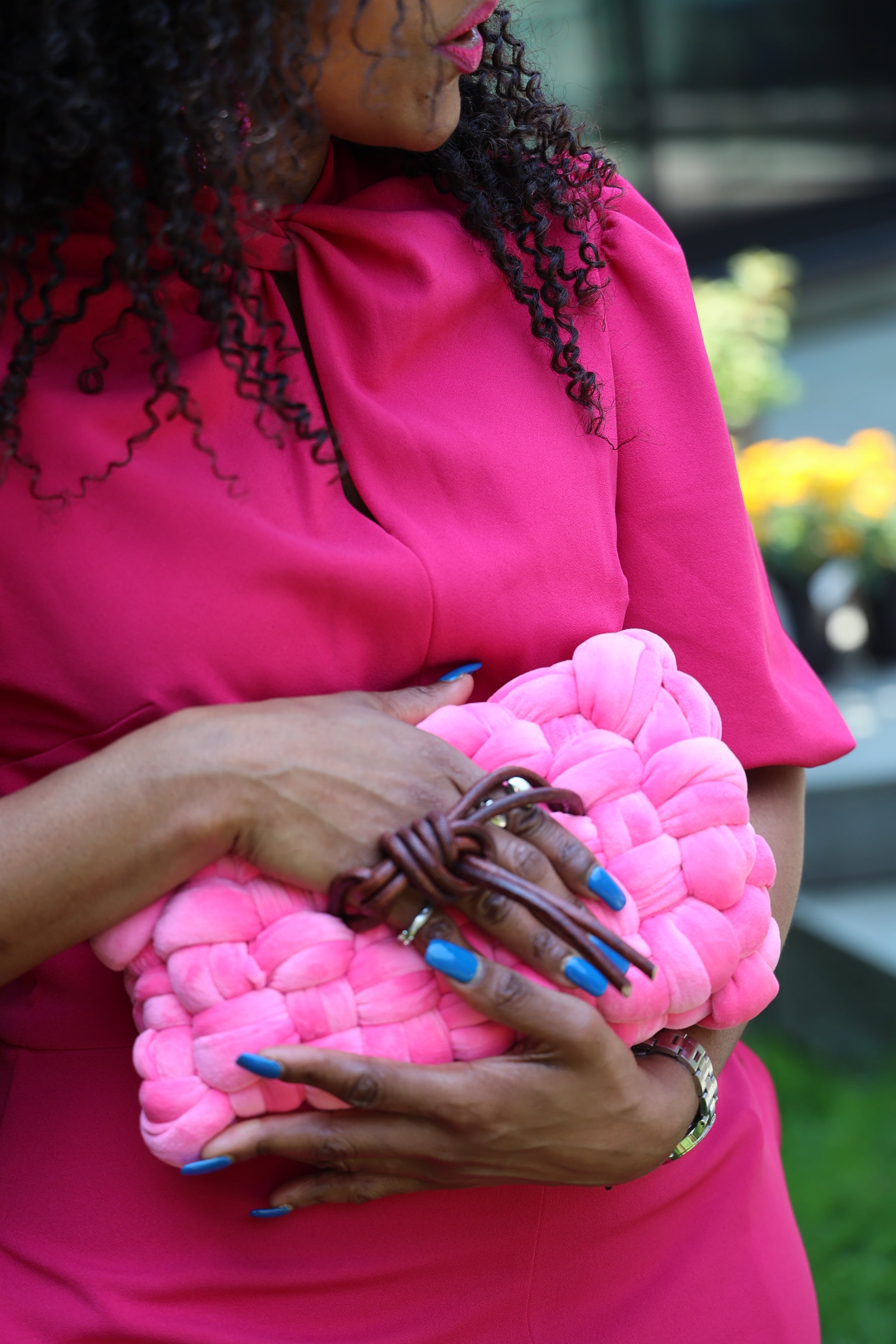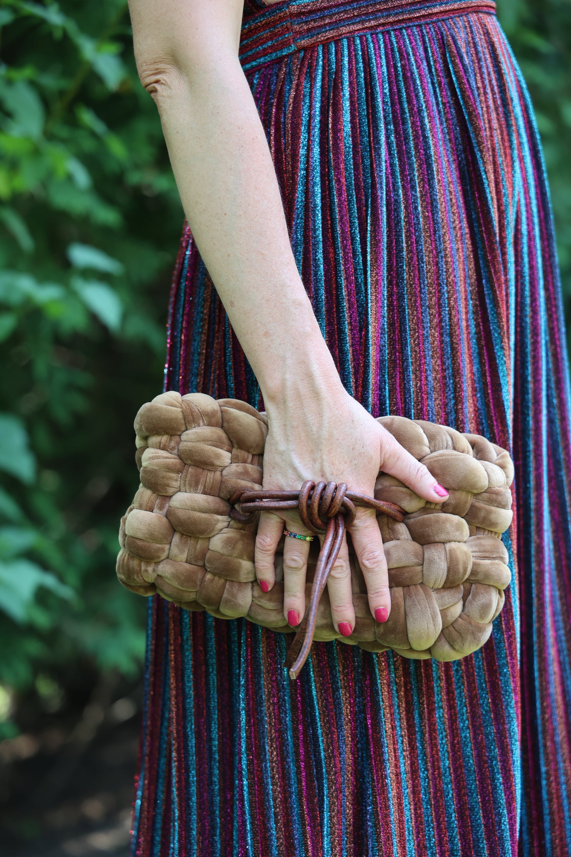 Meet the latest convertible clutch in a weave stitch with leather knotting as a hand strap. Another on-the-go purse, (because we are always on-the-go), that can elevate your outfit and add that extra punch of fun color. Add removable straps (sold separately from Hamilton Grace Designs www.hamiltongrace.com +$48) and change the look completely. Convert from cross body to short strap to clutch in less than 10 seconds.