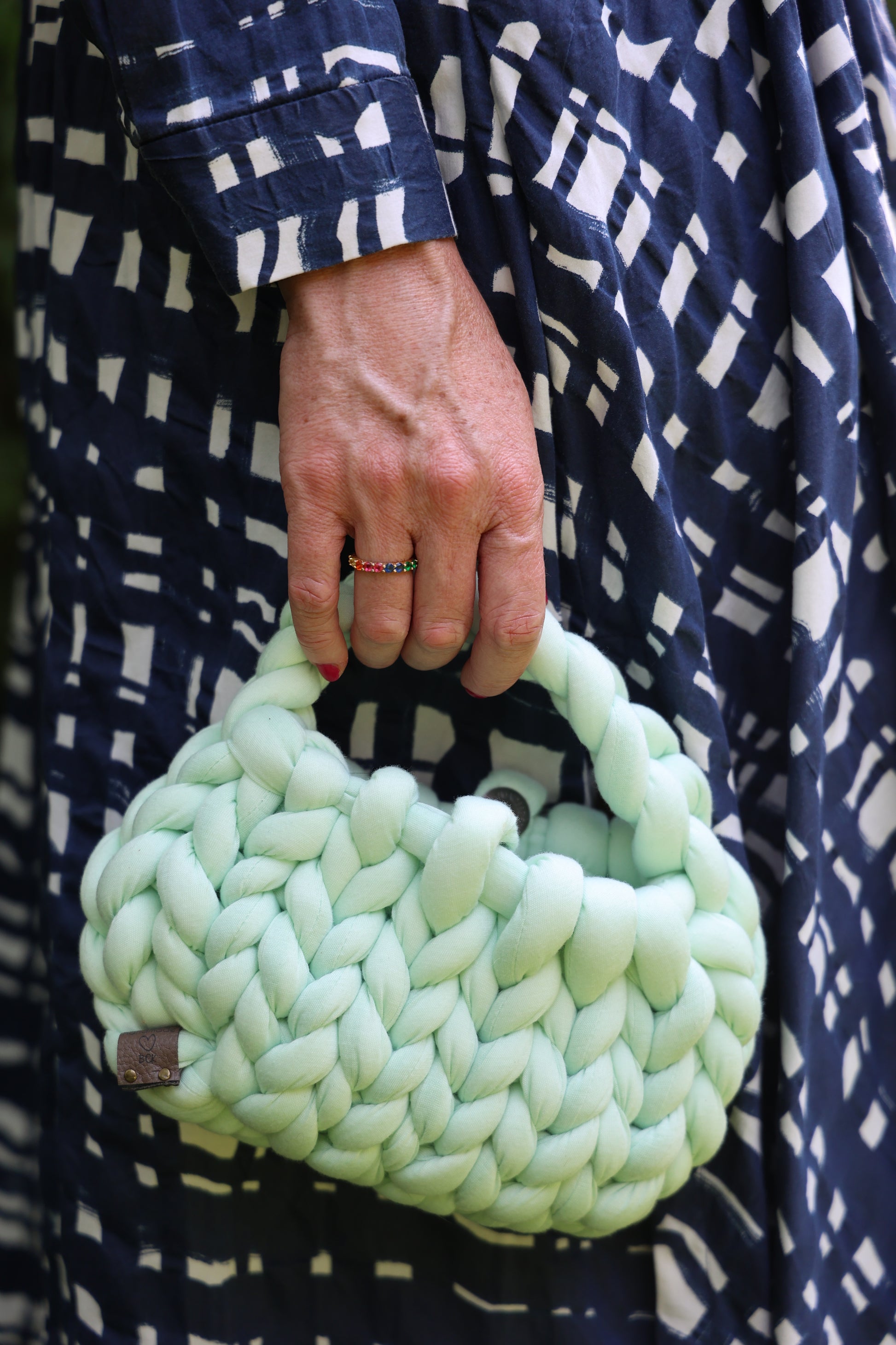 This is the modified Jelly Bean with no strap, just meant to be a fun accessory for your hand, almost like a purse bracelet. You can add Hamilton Grace straps to these if you want to make cross body (www.hamiltongrace.com +$48).